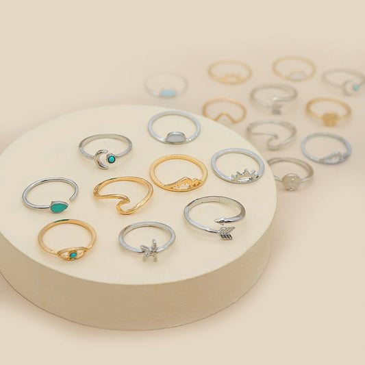 Ensemble de Bagues Vintage Lune et Étoile en Argent – Élégance Céleste à Porter