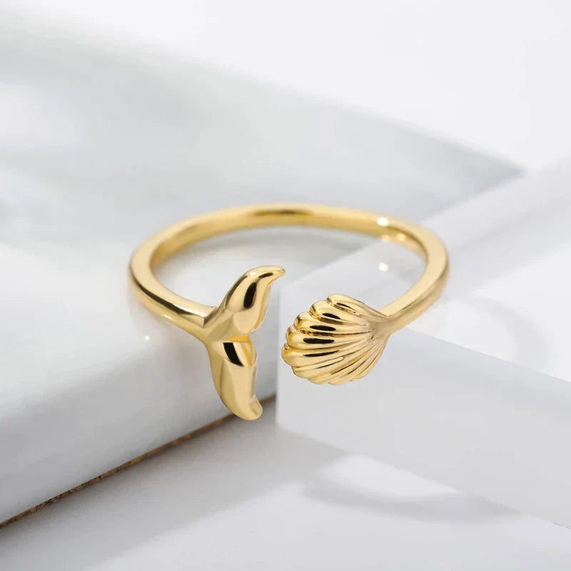 Bague Ajustable Sirène Éblouissante avec Coquillage Doré