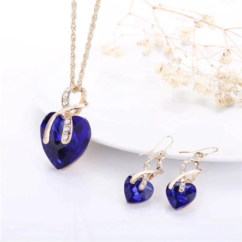 Élégant Ensemble de Collier et Boucles d'Oreilles Amour en Or 18K avec Zircon Bleu Étincelant
